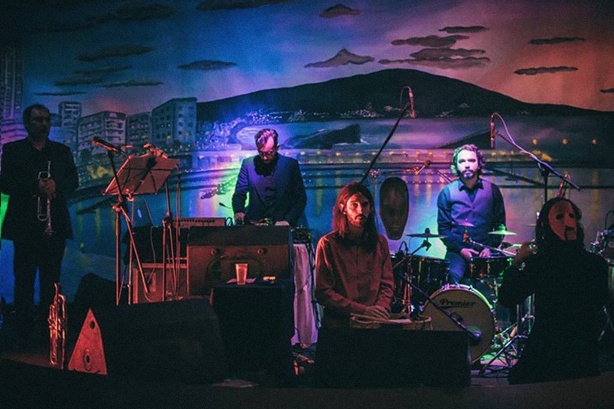 The Macumbas are formed by a cast of musicians assembled by HHY (Jonathan Saldanha) to perform a barrage of percussion, sub-bass pressure, horns and echoes. Based in Porto, they are influenced by electricity, ceremonial percussion, ecstatic chaos and suburban landscapes. Using Dub to unravel the sonic spectrum and rhythms from the mental jungle, their audiovisual language is evocative of jazz as imagined and practiced by Sun Ra and his Arkestra, in collusion with a visual fascination for voodoo cosmology, openly reveling in the cultural influence of figures such as Ballard, Sherwood, Burroughs and Carpenter.